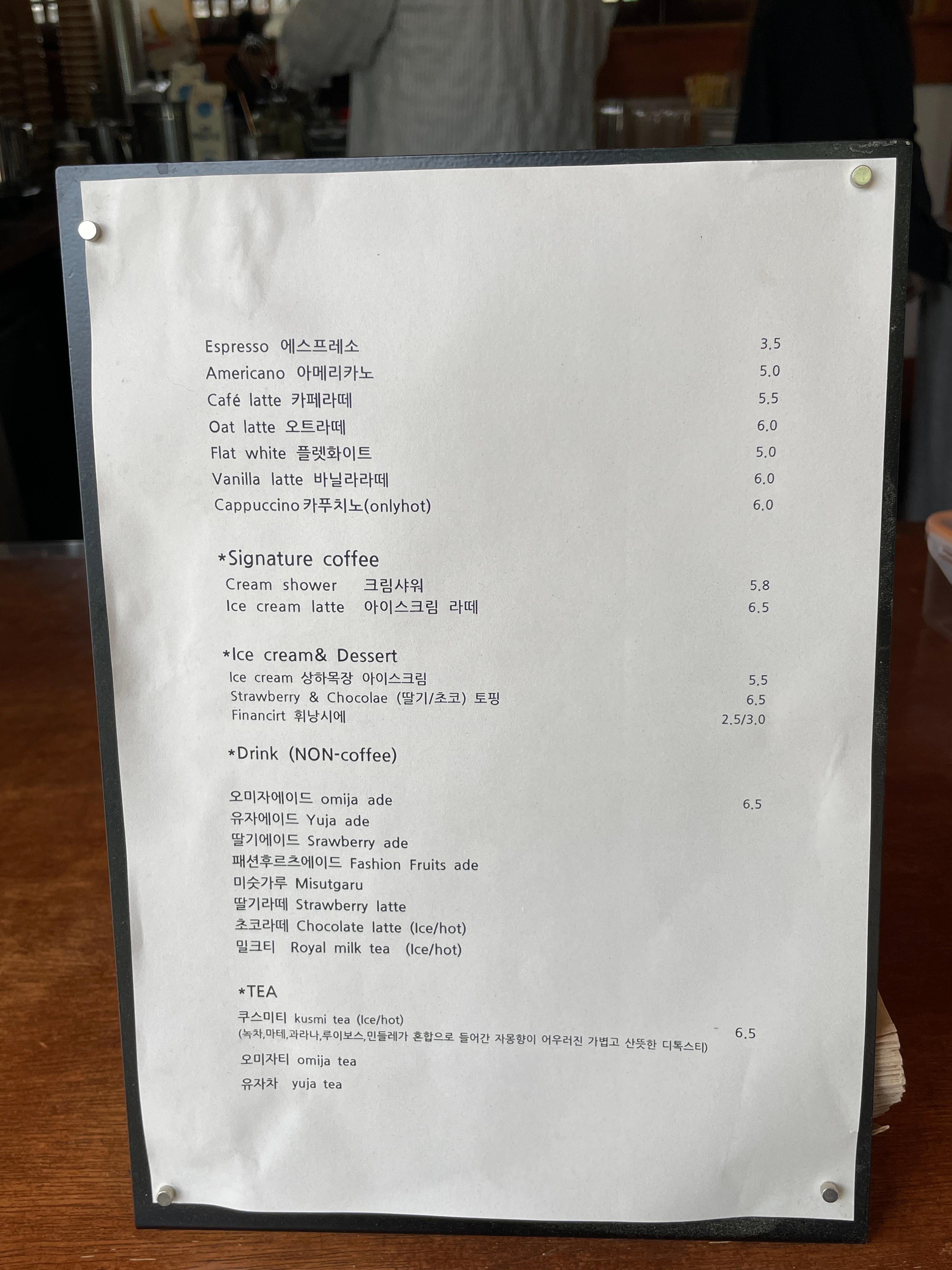 전 시그니처 메뉴인 크림샤워 한잔 카페라떼 한잔 주문했습니다! 논커피 메뉴도 다양해서 좋아요