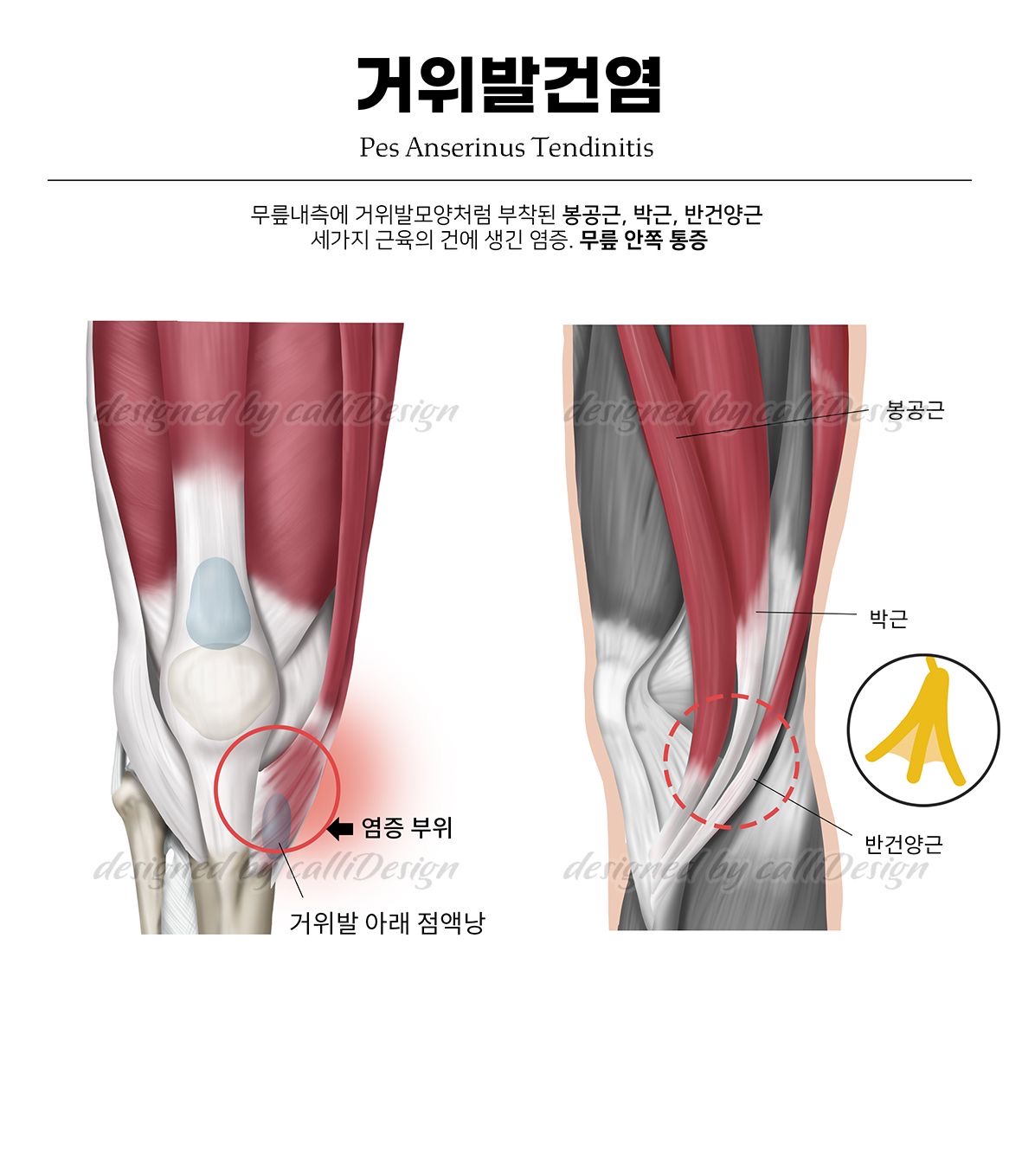 • 원인: 무리한 방향 전환, 노화로 인한 관절 마모, 혹은 평발이나 X자 다리 체형인 분들에게 자주 나타납니다.