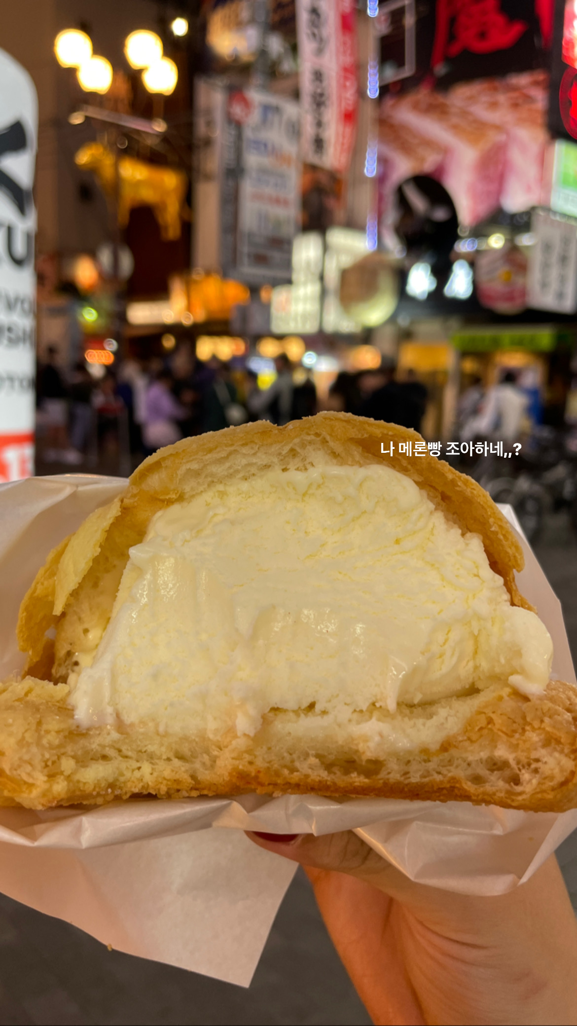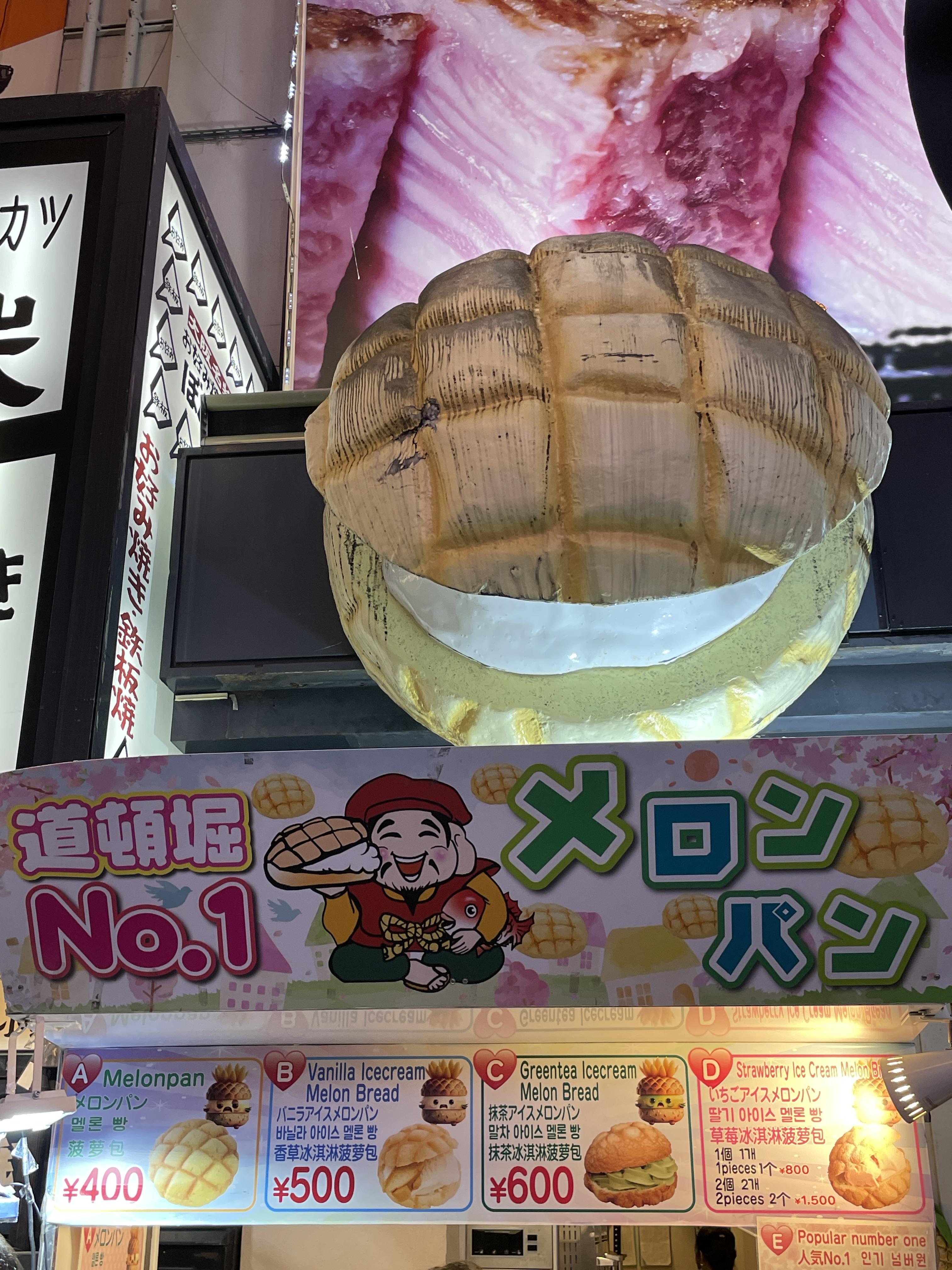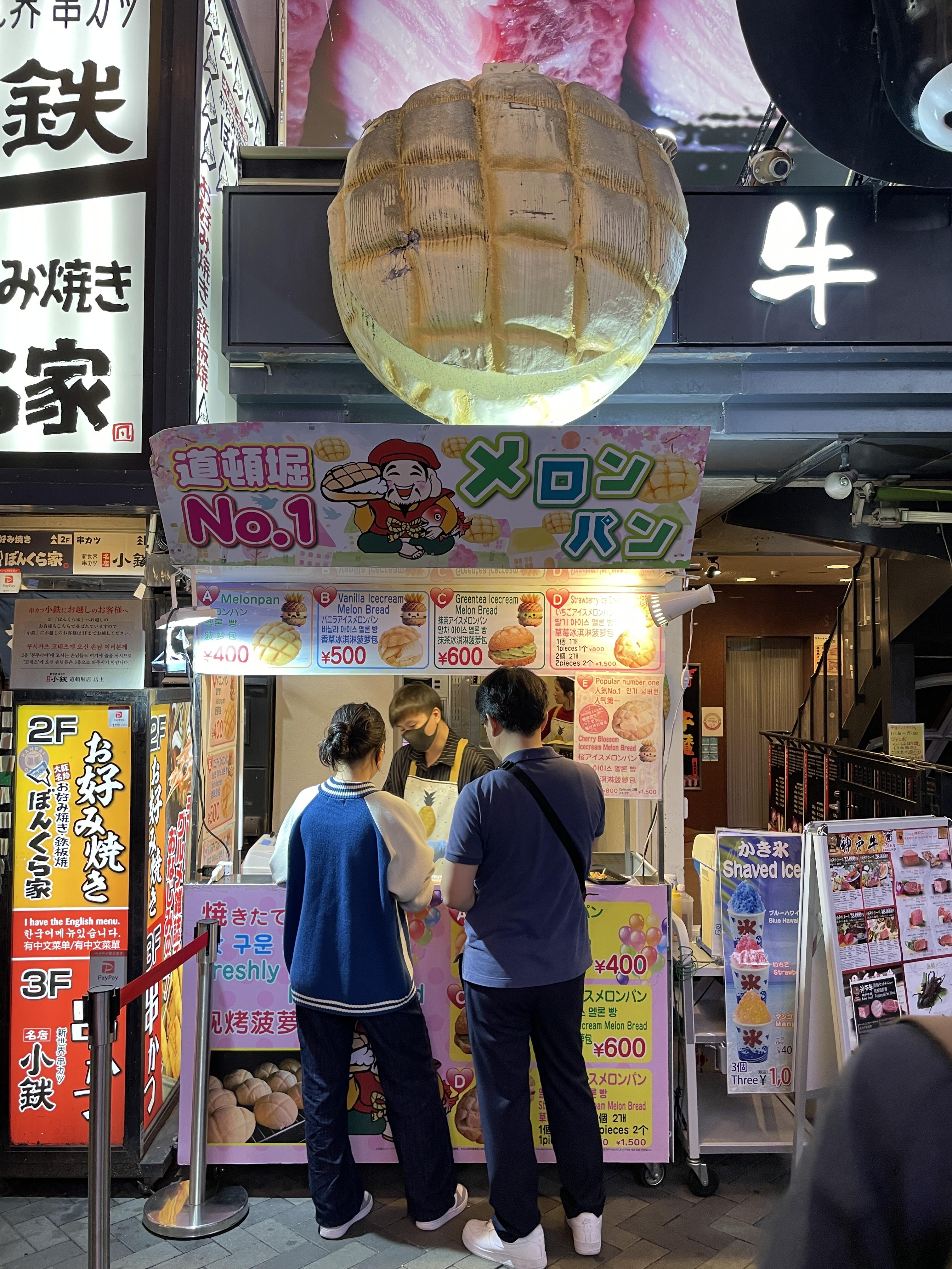제가 갔을 땐 줄이 정말 길었거든요 그래도 금방 줄어드니까 괜찮아요 오사카에서 먹은 길거리음식 중에 이 멜론빵이 단연 1등이었습니다