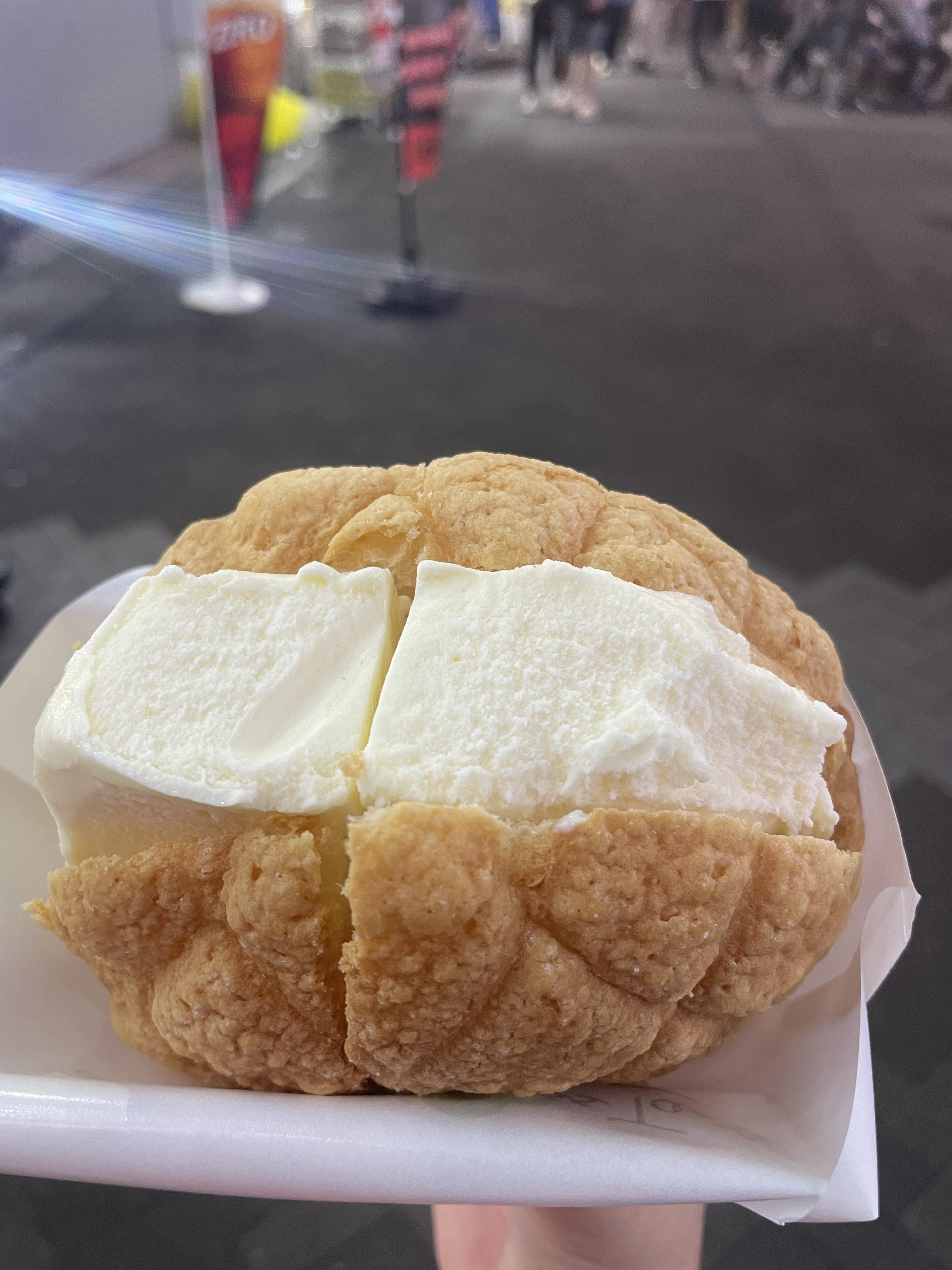 멜론빵 사이에 아이스크림이 가득 들어가는 너무 맛있는 길거리음식이었어요